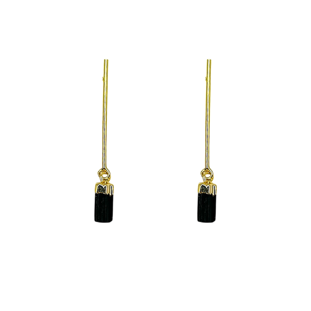 Brinco Reto – Turmalina Negra | Coleção Amuletos